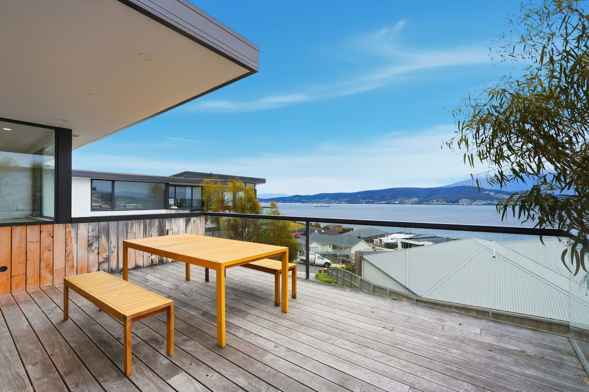 Stay in one of the only Bruny Island waterfront properties that has spectacular ocean and mountain views from the living/dining/kitchen and bedroom, not to mention the enormous deck. Relax in bohemian luxury on 2 acres of natural bush and garden in the former art studio, now a private guest home, complete with unlimited WIFI. Full of artwork and Persian rugs, this is a place to unwind and absorb the peace and amazing views, especially at sunset, with uninterrupted access to the water's edge.