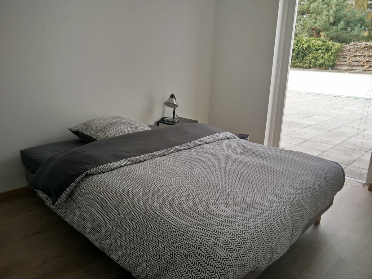 Vous pouvez vous garer gratuitement dans la cour devant l'appartement. Magnifique logement neuf indépendant, très calme, dans une maison individuelle ( Hall d'entree commun) - TRES Grande douche à l’italienne,Salle de bain travertins. - canapé d’angle, table à manger pour 2, TV, wifi, Netflix ( vos codes), Chromecast , coin bureau. - Cuisine totalement équipée. - Chambre lit double standard grand dressing. - machine à laver En été, Terrasse zen relaxante, pergola, hamac , table etc..