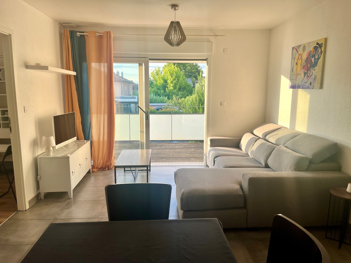 Résidence calme et sécurisée à 1 mn de la sortie de l’autoroute Proximité tout commerces/restaurants Pkg privé Appartement lumineux et moderne en Rez-de-jardin / 2 terrasses T2 / 50 m2 entièrement rénové, 4 personnes Wifi gratuit (fibre) Accès PMR Salon Ciné 165 cm / Salle à manger /cheminee électrique 😊 Chambre tout confort avec smart TV Canapé convertible 2 places L’ensemble du mobilier et literie sont neufs Cuisine entièrement équipée Salle de bain lumineuse avec douche a l’italienne