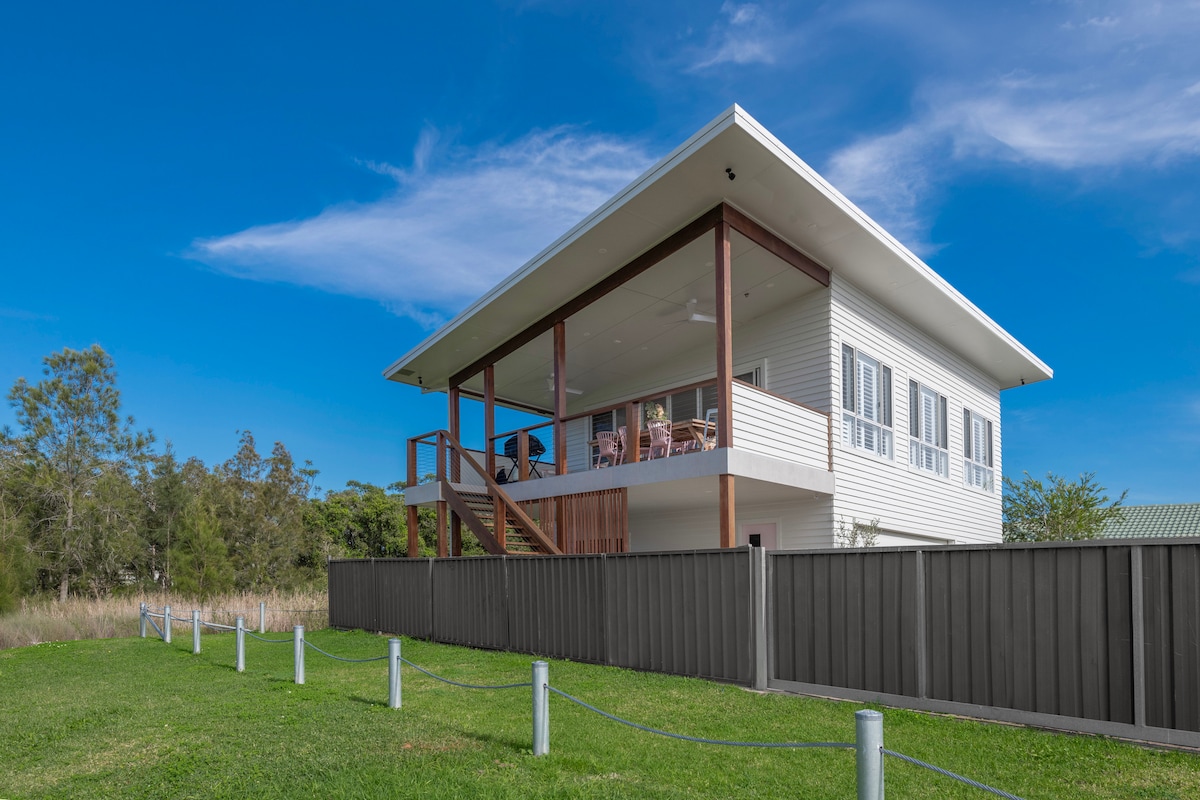 Situated between the beach & the lake at the end of a quiet cul-de-sac with a picturesque lagoon view! And only metres away from access to the famous new Fernleigh Track! This one bedroom fully equipped cozy house is brand new & spotlessly clean! Fully equipped with all linen, towels, soaps, shampoos, toilet paper, Nespresso coffee machine + coffee pods, kettle, instant coffee, tea bags, sugar, toaster, air fryer & all your kitchen essentials.