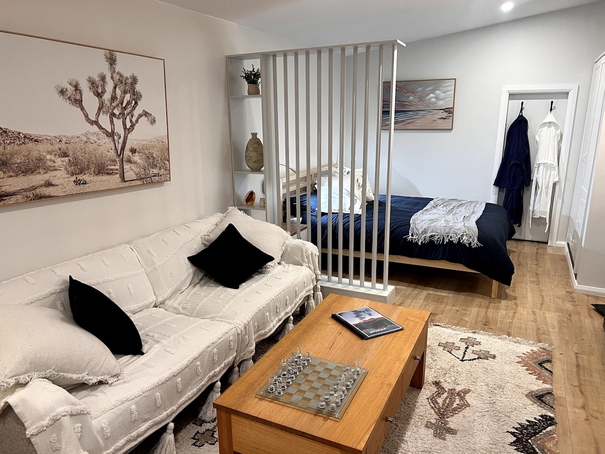 Riches Travels Retreat is a relaxed, private and stylish space. An ideal base to explore local cafes, restaurants or if you are visiting family or friends and need a place to rest between visits. If you're in the area for work or traveling through and just need a place to sleep over night before continuing your journey. Then Riches Travels Retreat is ideal too. Need something larger, check out Riches Retreat which is next door. Sleeps up to 4 and is self-contained and pet friendly.