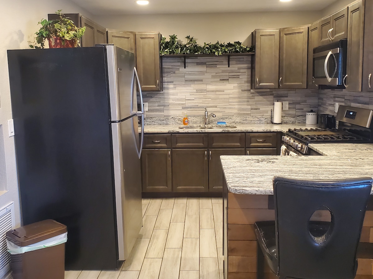 Discover modern comfort in our duplex retreat, nestled in a quiet neighborhood near Kingman's beautiful parks. This cozy space features contemporary decor and all essential amenities for a relaxing stay. Enjoy the sleek kitchen, inviting living area, and a peaceful bedroom for restful nights. Take advantage of nearby parks and walking trails for outdoor adventures. With convenient access to shopping centers, experience the perfect mix of tranquility and modern living. Book your stay today!