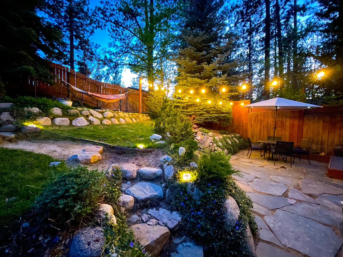 Rhapsody Lodge is a classic mountain home in a peaceful neighborhood near shops & recreational facilities. The large alpine property is a 2-block walk down to the lake's sandy beaches, a 1-block walk up to hiking trails, and close to ski areas. Easy flat access. The Lodge has all the comforts of home, including WiFi, flat-screen TVs, full kitchen & laundry room. Indoor dining for 8. Deck & fenced yard with tables, BBQ, hot tub, ping-pong & more. Local mgr on call. Flexible check-out time.
