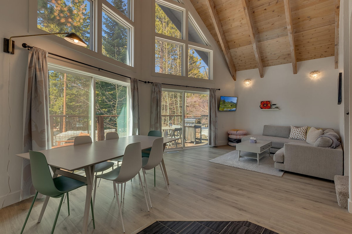 Welcome to the Dazzling Chalet, a fully renovated 3+BR/2.5BA escape on Tahoe’s West Shore near Palisades Tahoe and Homewood. This 2,100 sq ft home features a modern kitchen, soaring great room, and serene Cal King suite with forest views. Enjoy plowed winter access & easy parking in a prime location near Fire Sign Café, West Shore Market, Tahoe City, skiing, dining, trails, and a charming snowshoe loop just a street away, a true mountain retreat where every moment feels magical.
