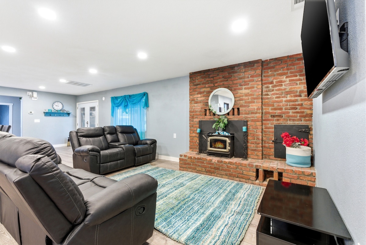 Welcome Doctors, Nurses, Students, Military! Discounts Offered. Mid/Long-Term Ready. Cozy 3BR/2BA Near Hospital. Charming Hanford Home. Sleeps 5-6. Sleek Decor, Amenities, Spacious Yard. Open Design Living Pet Friendly 3 Comfortable Bedrooms Smart lock High-Speed Wi-Fi Washer/Dryer EV Charger Complementary wine/coffee BBQ Large backyard Free Parking