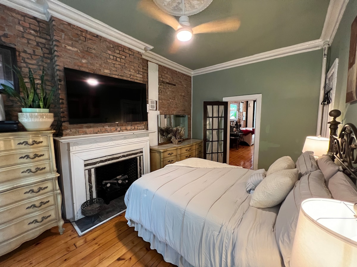 Lovely, private bedroom suite in historic house on your own private floor, including a private living room, private full bathroom in our house. Super Comfy Keetsa-SoHo full-size bed; organic, eco-friendly mattress. Full of light, charm, antiques and vintage elements; a poetic old-world feel. Original wood parquet floors and detailing. We are a clean, and courteous home, and expect you to be the same. Please reach out to us directly if you have questions about the # of guests limit.
