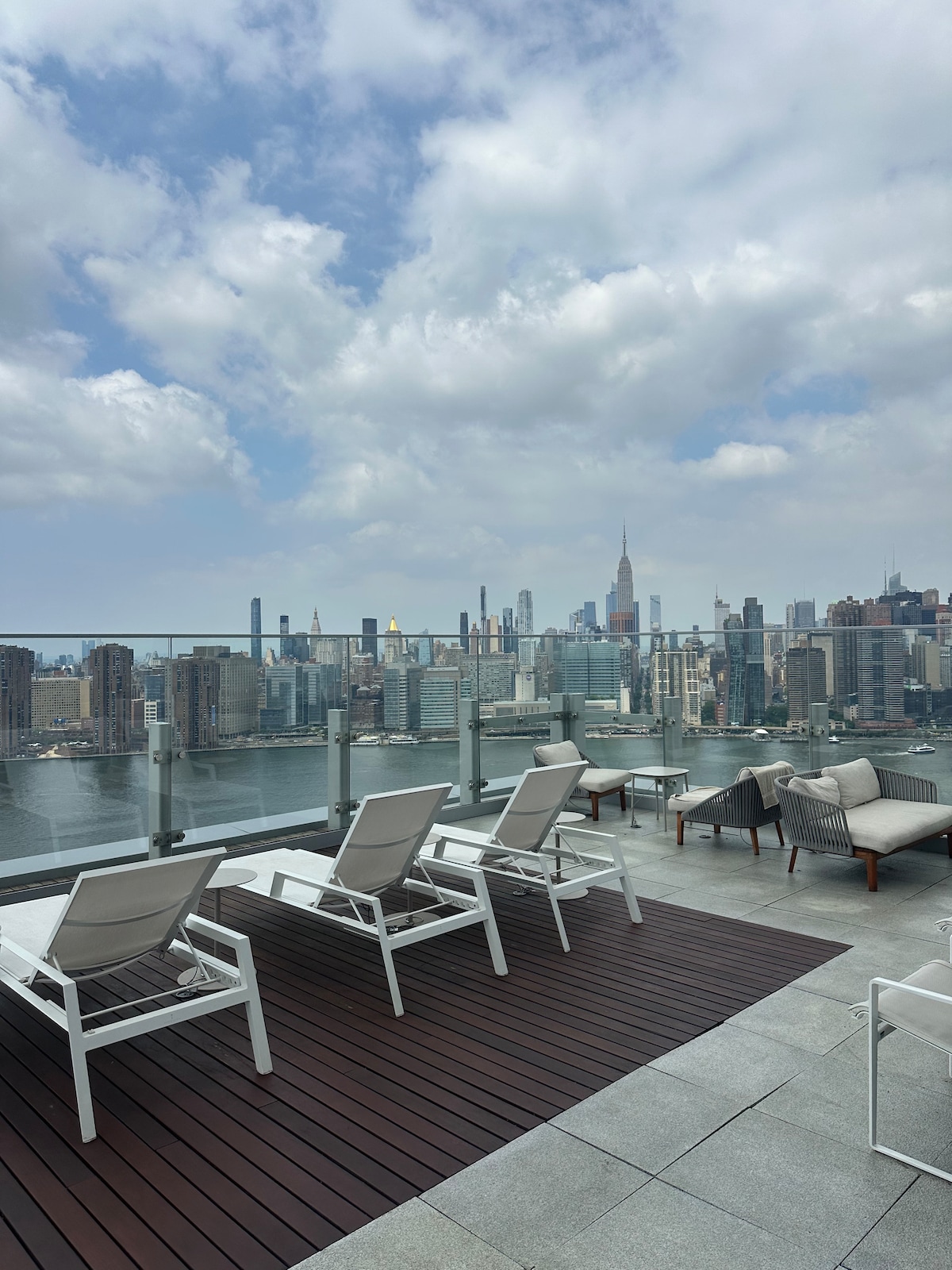 This Long Island city Queens New York cityskyline water side views Connecticut minutes away to Manhattan seven train is directly downstairs two blocks away super convenient get to Times Square in 15 minutes on the seven train there is a photo of a map with exact address Stay in an upscale place that’s near everything you want to visit. 2 Bedroom 2 full bathrooms space accommodations for you and up to 6 additional guests with 6 beds to offer. Best location with New York City skyline view
