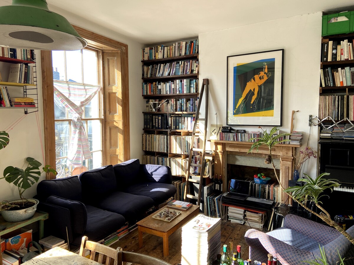 My beautiful flat with 2 dbl bedrooms & 2 sgl mattresses is surrounded by original art, an aquarium, and the most amazing views of the city with spectacular sunsets. South and west facing, it's filled with bespoke furnishings and lush plants. It's ideal for artists & art lovers to relax or work, providing the perfect backdrop for an inspiring London stay. It's in a peaceful residential part of vibrant Hoxton, surrounded by excellent galleries, parks, clubs, restaurants, boutiques, and markets.