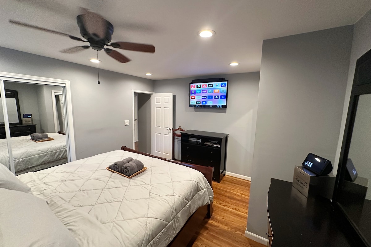 Relax and recharge at this peaceful, centrally located retreat. Your private room features a cozy full-size bed, desk and chair for work or study, TV for entertainment, and a coffee station with microwave and mini fridge for quick bites. Enjoy the privacy of your own bathroom and entrance, with easy on-street parking right in front of the house.