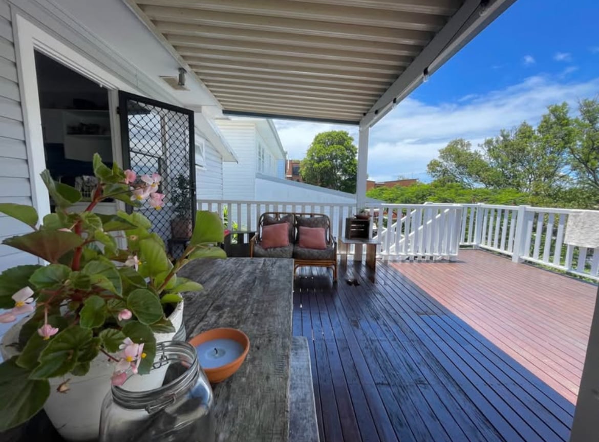 Love the sound of the ocean in the morning? Want an amazing choice of overlooking the Ocean or the River on the full sized deck with your morning coffee or afternoon cocktail? Then we have the holiday get away for you. Once you arrive you can leave the car parked as you can walk to pretty much everything: •Cafes, Restaurants and amenities •Beach and river Original cottage with timber floors, living area opening onto the deck with amazing views from the master bedroom and living areas.