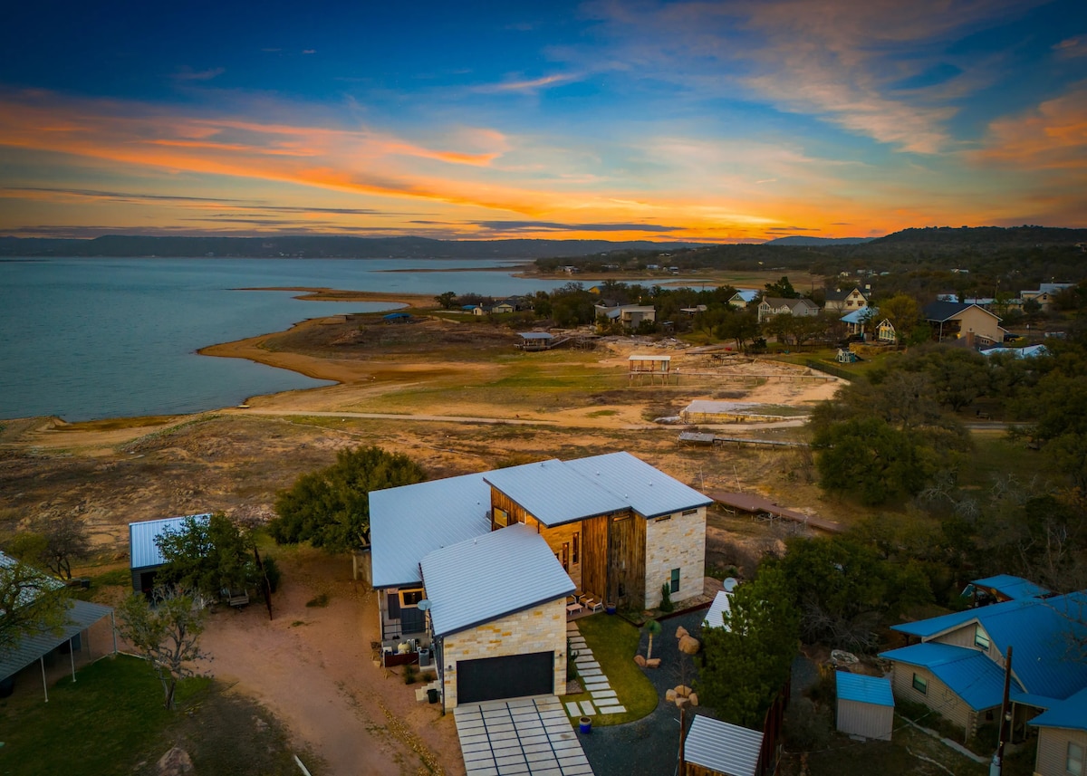 平均评分 5 分(满分 5 分),共 26 条评价林登·B·约翰逊湖畔的大蓝屋,带泳池和水疗中心(秋季特惠)