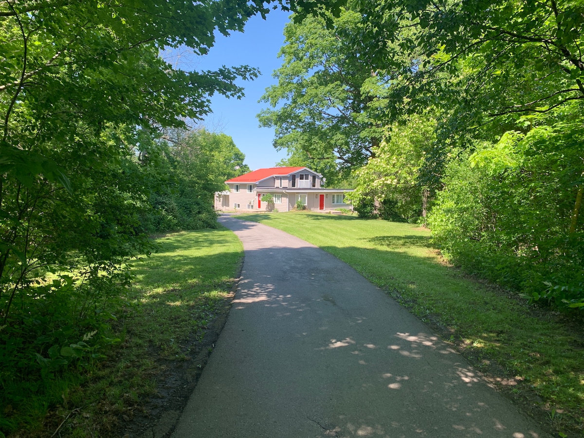 A true retreat right on the great swimming & fishing lake, foodie’s kitchen, king size bed, outdoor & indoor games. Secluded, but good road, 25km to Kingston. Perfect to work from home. Bell fibe internet. Close to ATV &snowmobile trails &FRONTENAC Prov. Park. X-country ski, Cataraqui Trail. Ice fishing. Bird watching. Great boating. Perfect for entertaining. Spacious common space, Weber BBQ, 5 outdoor areas to enjoy. 1 acre of property, variety of birds&wildlife. GENERATOR if power outage.