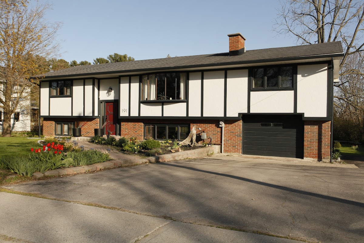 Fully renovated main floor of a house, 5 minutes from the historic downtown Kingston! Fully stocked, open concept kitchen with a heated floor. Rainfall shower in the bathroom, also with a heated floor. Bedroom walls have been soundproofed. The back deck is fenced in providing full privacy. Hot tub is open year round. There is 1 king, 2 queen size beds, 1 queen size pull out couch and 2 single folding floor mattresses. Driveway parking for 4 cars or 3 large vehicles, with level 2 Ev charger