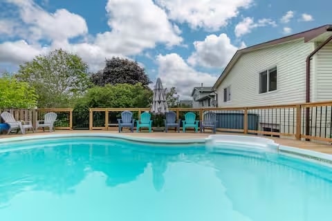 Escape to our Kingston oasis - a spacious 3-bedroom house complete with luxurious amenities. Relax in the serene meditation room or stay active with Peloton workouts. Cook in the modern kitchen or dine by the heated pool. Enjoy privacy in the backyard complete with a BBQ. Located near downtown, our home offers tranquility and convenience. Explore local attractions like golf courses, colleges, and historic sites. Experience Kingston's beauty and adventure - book now for the ultimate retreat!