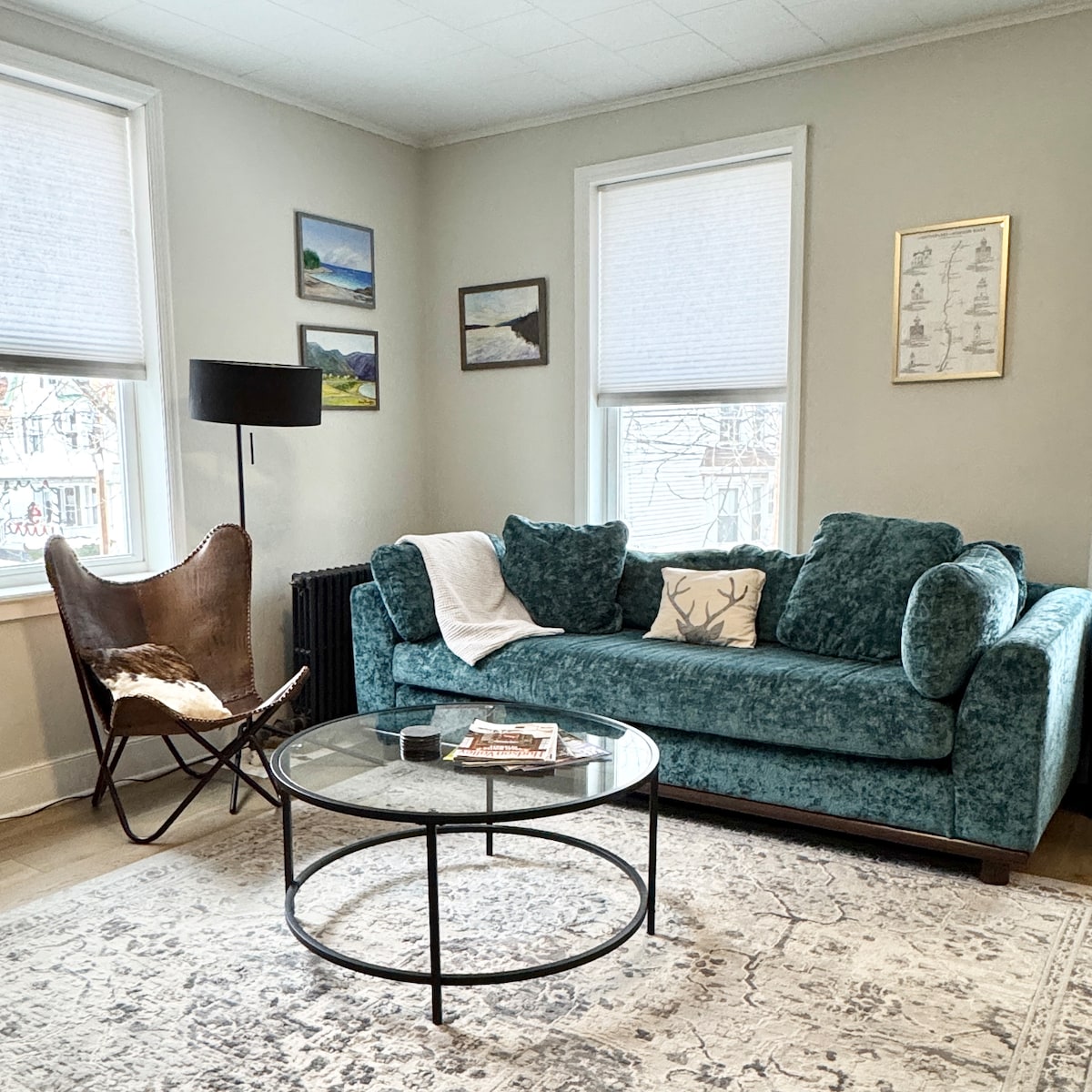 Welcome to our inviting and light 2-bedroom apartment in uptown Kingston. The location is a walker's paradise with the best of the historic Stockade district just a stroll away, and is well-situated to explore the Hudson Valley and the Catskill Mountains. Comforts include a leather sectional sofa, Roku SmartTV, HD projector, dishwasher, deluxe bedding for a dreamy night's sleep, blackout curtains, a sound machine, and two armchairs on the front porch.