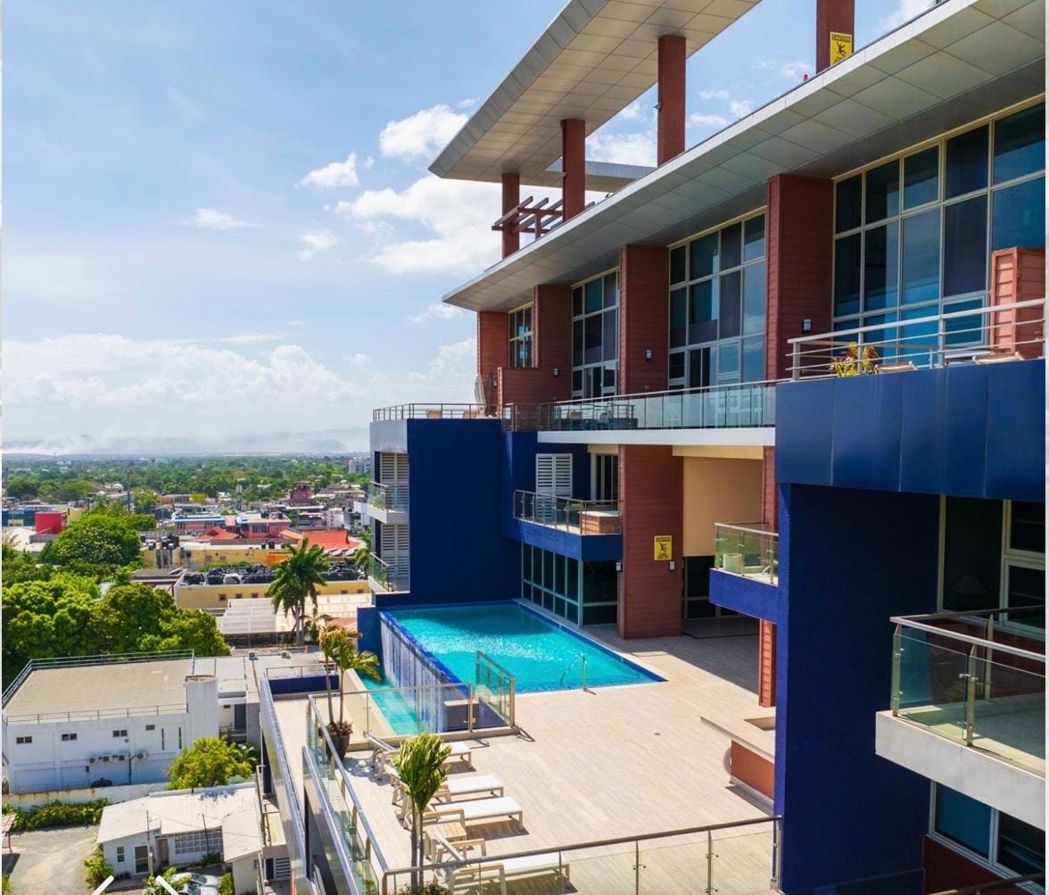Gated open floor concept penthouse with floor to ceiling windows, large walk-out balcony, roof top gym and entertainment areas provides a breathtaking view of the surrounding mountains, city and Kingston Harbour! Free WiFi, smart TV, full kitchen and laundry provides for convenience while roof top chill out and ground level pool provides much needed relaxation. 5-10 mins drive to Devon House, Bob Marley Museum, Emancipation Park, National Heroes Park, and numerous eateries.