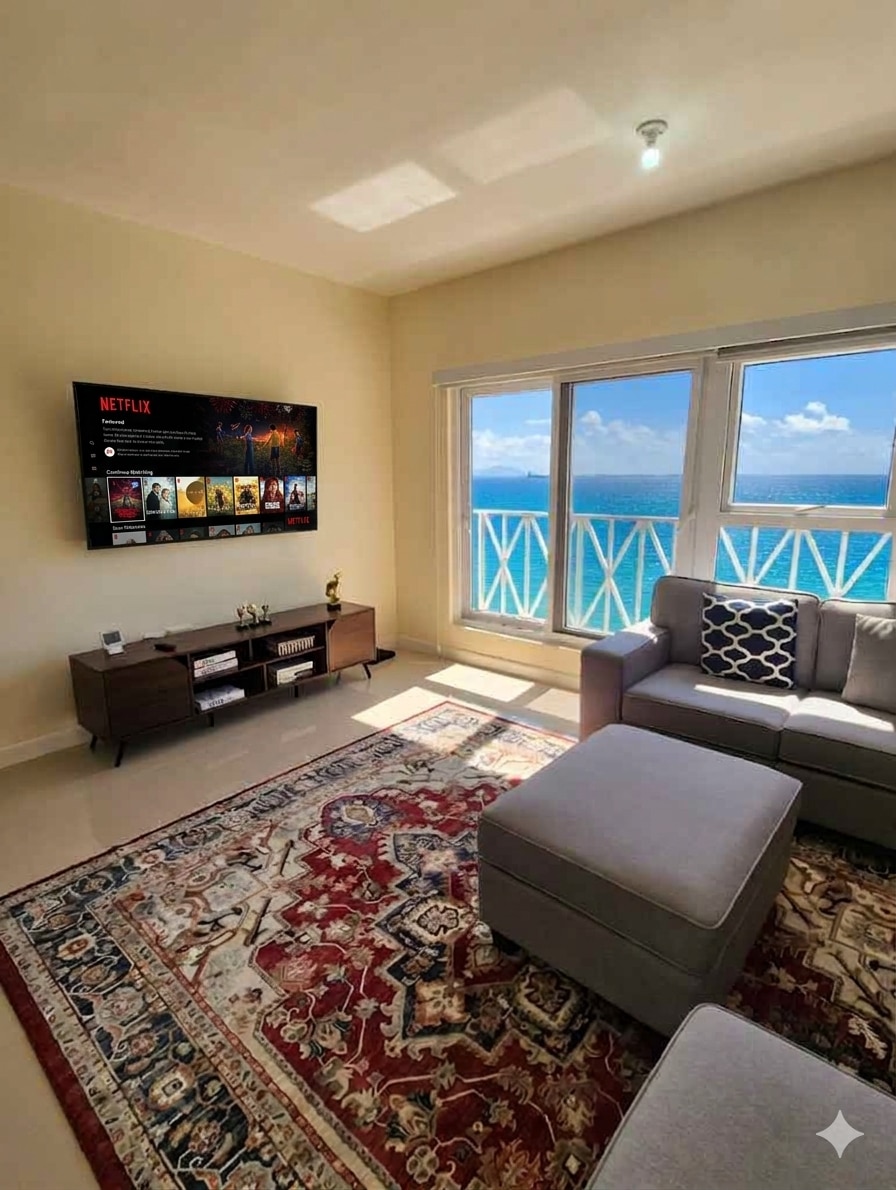 Modern 2 Bedroom Condo Beach, Airport & Malls near-by Steps from the beach and minutes from the airport and top shopping malls, this sleek modern condo features a 2 queen size bedroom, living room with a pull out sofa bed, a full kitchen and in-unit laundry. Enjoy the shared pool, 65 inch TV and high-speed Wi-Fi. Perfect for couples, families, or remote work. The sound of the waves is a welcome addition to the stay. Pool Access 24 hours security Ample parking