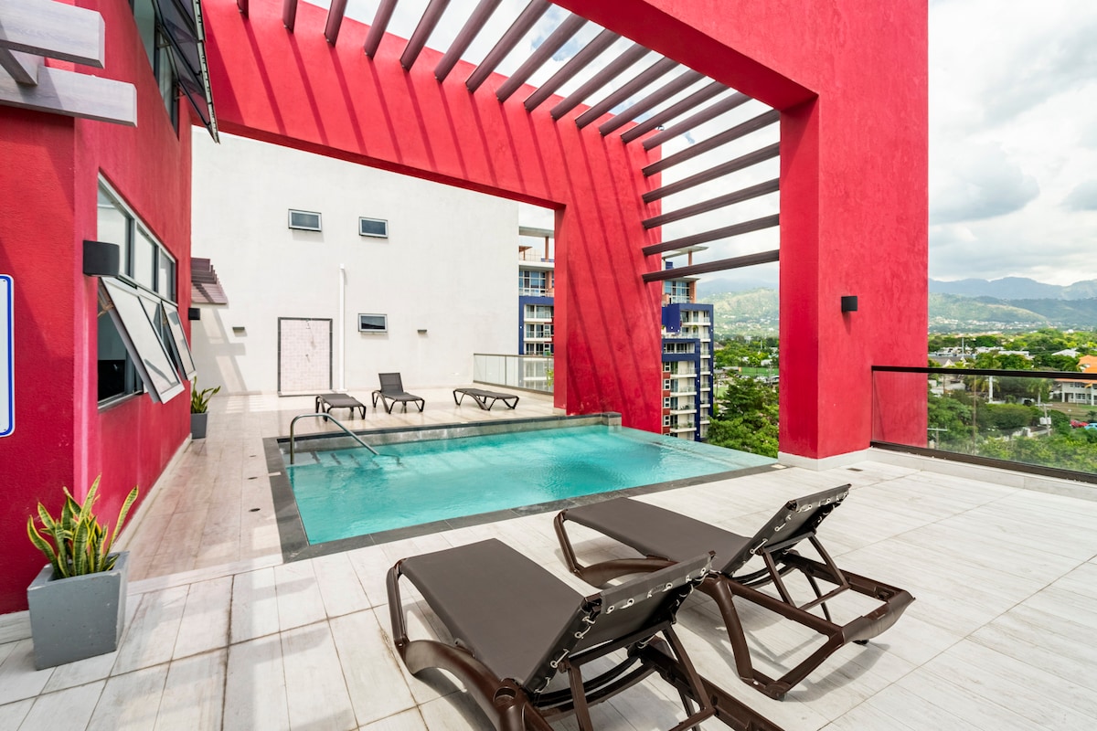 Gated open floor concept penthouse with floor to ceiling windows, large walk-out balcony, roof top gym and entertainment areas provides a breathtaking view of the surrounding mountains, city and Kingston Harbour! Free WiFi, smart TV, full kitchen and laundry provides for convenience while roof top chill out and ground level pool provides much needed relaxation. 5-10 mins drive to Devon House, Bob Marley Museum, Emancipation Park, National Heroes Park, and numerous eateries.