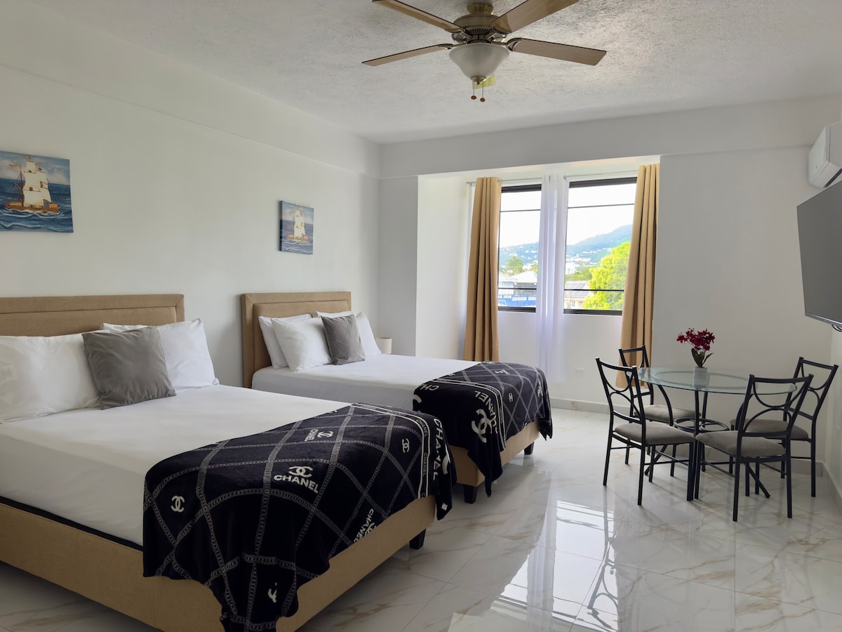 Pearl of the City Properties are First choice when it comes to Enjoying a stylish experience at a centrally-located place on a budget. This apartment is fully equipped with all the necessities needed to have a stress free stay. The apartment is in WALKING DISTANCE to: Bob Marley Museum, 100 Casino & Restaurant, other restaurants, Sovereign Mall and Supermarket. (Fits up to 4 guests comfortably) -KITCHENETTE IN UNIT: microwave, kettle & sink. Full kitchen is in separate area. Love, POTC