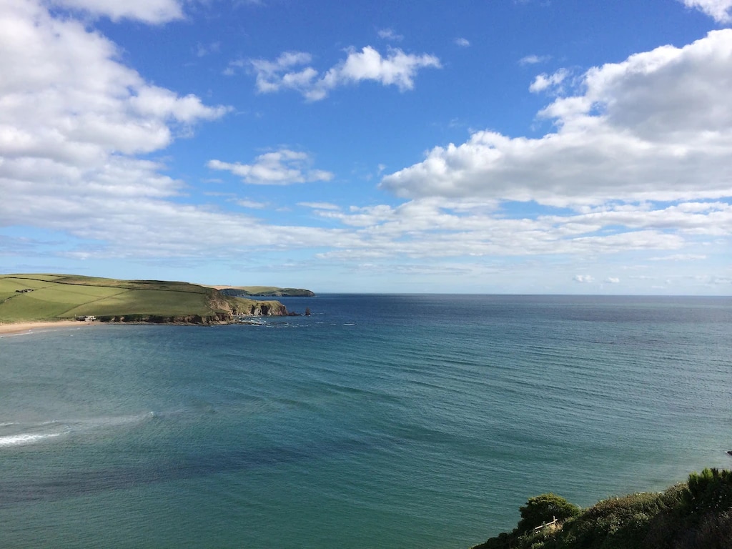 Set in unspoilt countryside with great sea views and easy access to the local beaches and the costal walk . Very Large open space with high ceiling , large windows, walk out on the garden for stunning views overlooking the sea. Inside area includes one king size double bed and one smaller four poster double, An en-suite all inclusive shower room, dining table, big wood-burner, large wall mounted surround sound TV with Netflix, comfortable seating areas. BBQ area with great views.
