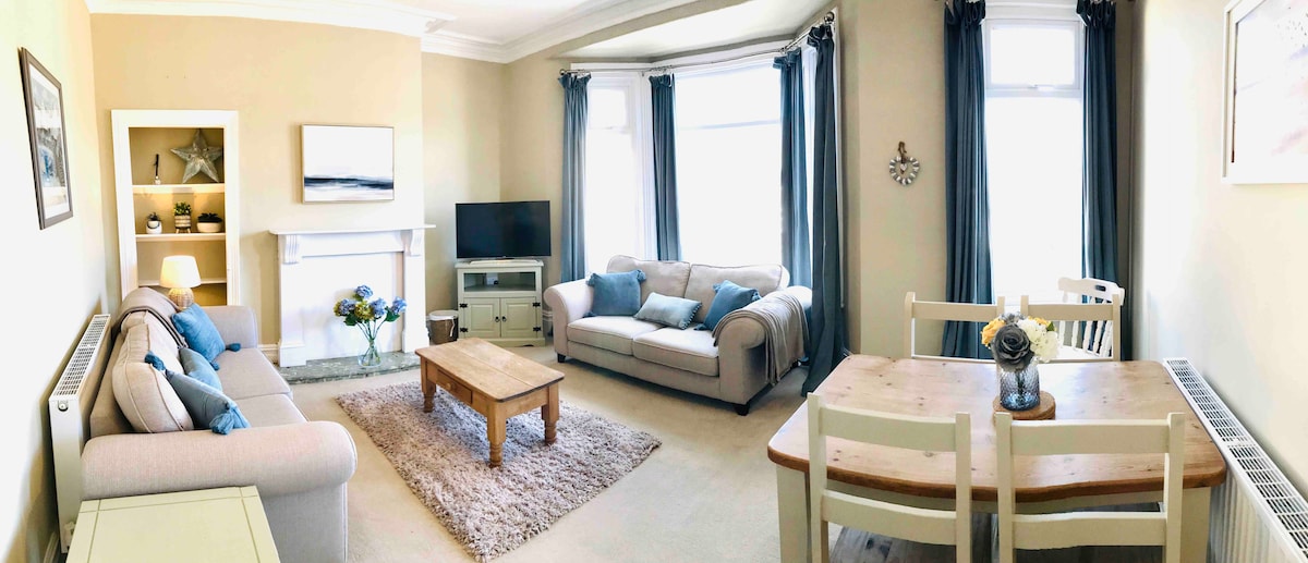 2 bedroom sea view apartment located in the heart of Cleethorpes seafront, accommodating up to 4 guests , recently renovated to a high standard it compromises of 2 double bedrooms, kitchen dining area, lounge with access to balcony and outside seating area to the rear property. Free street parking with easy access to rear of apartment, free parking to front of apartment between 7pm-9am and also a 24hr carpark £5 24hrs less than 30sec walk from apartment.