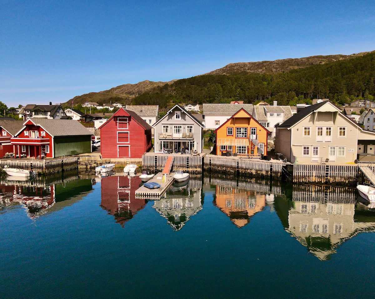 Leilighet (48 m2) i tradisjonell sjøbu i nydelige Smørhamn, rett ved sjøen. I det historiske bygget er det fem leiligheter i ulike størrelser til leie, med plass til opptil 25 personer totalt. Vi tilbyr også båtutleie og det er fine forhold for kajakkpadling. I nærheten finner du det tradisjonsrike fiskeværet Kalvåg, og Bremangerområdet ellers byr også på en rekke severdigheter og aktiviteter. I Smørhamn kan du virkelig oppleve norskekysten på sitt beste!
