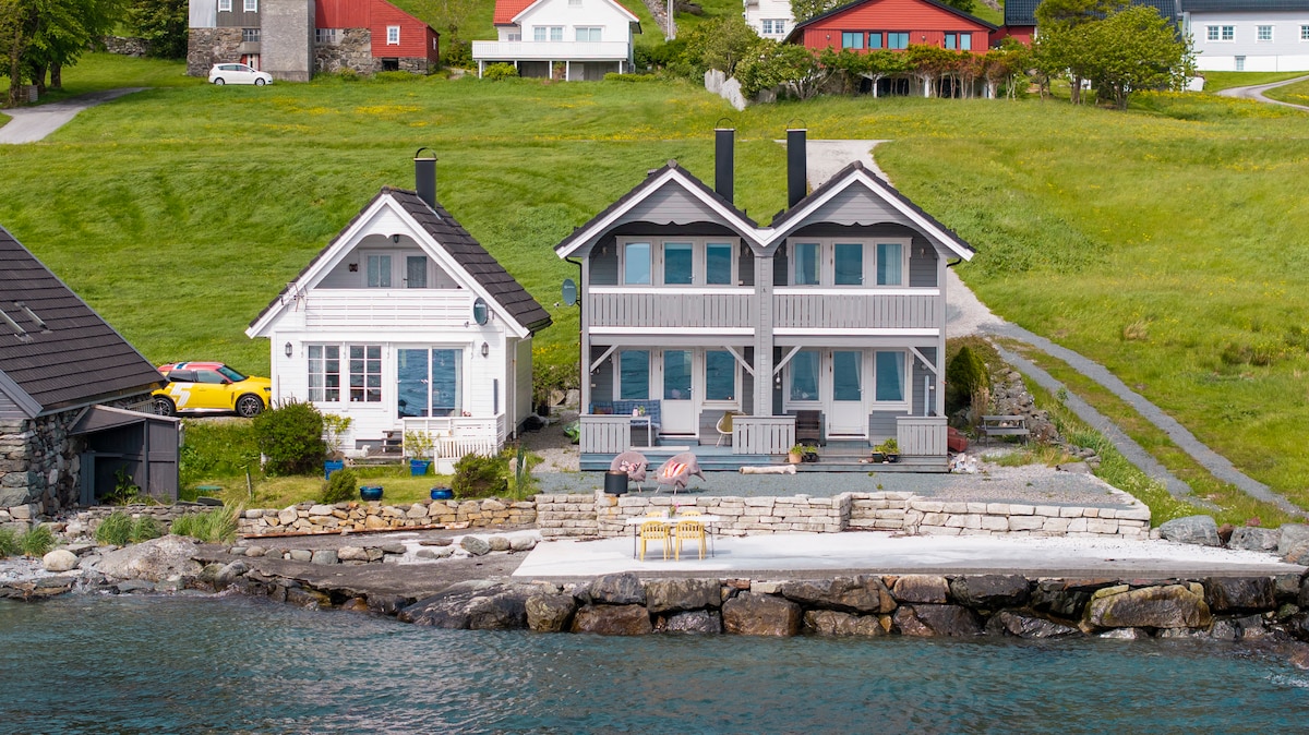 峡湾旁边的房子-私人码头、热水浴池、船只租赁