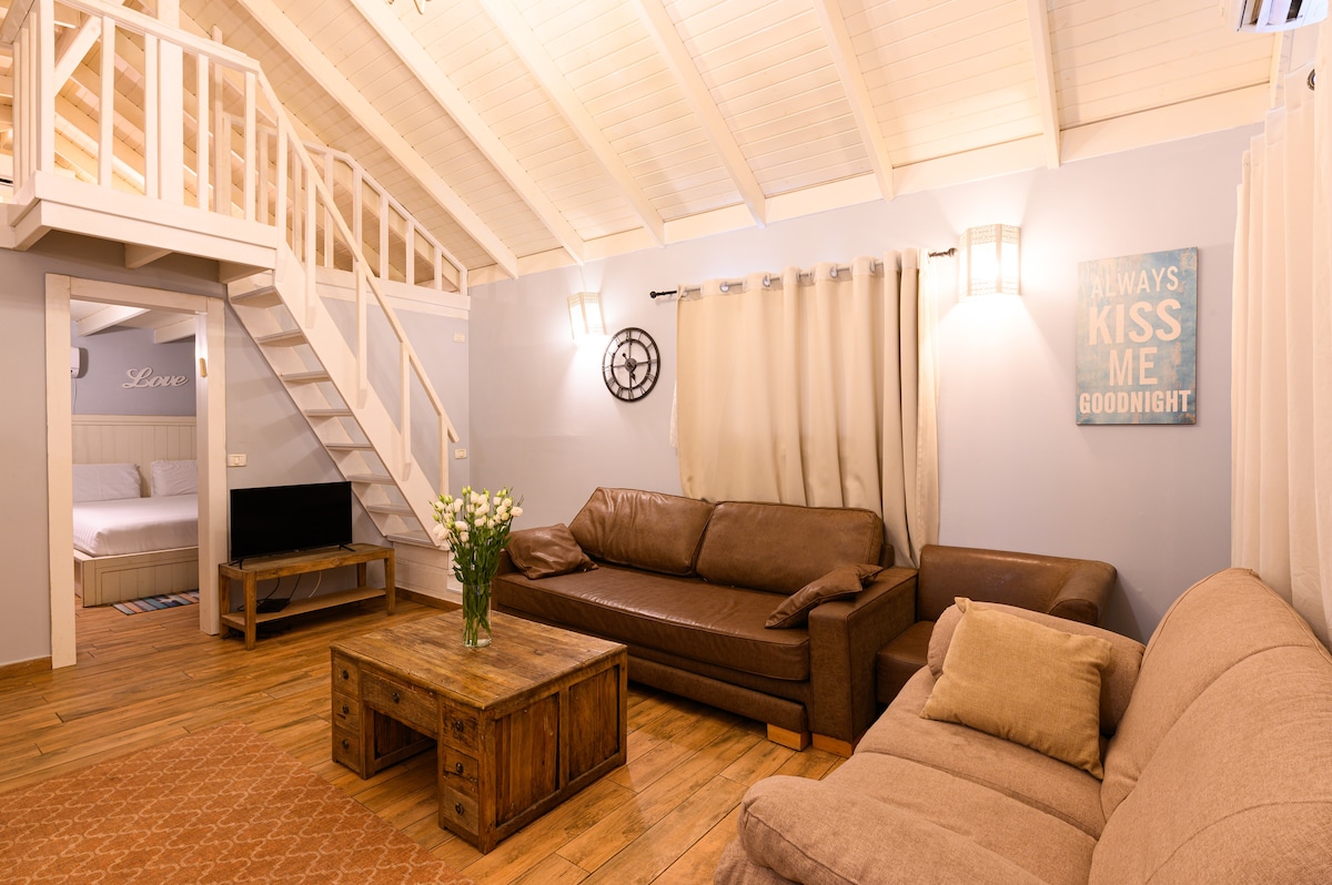 יחידת אירוח זוגית במושב רמות בדרום רמת הגולן. היחידה מעוצבת בסגנון אירופאי נועז בשילוב של צבעים וחומרים שונים בהרמוניה מופלאה. במרפסת מחכה לכם פינת ישיבה מפנקת ואמבטיית חוץ עשויה מתכת. ביחידה: מיטת קינג סייז טלוויזיה חכמה שולחן עבודה פינת ישיבה מקלחת מאובזרת מטבחון (ללא אופציית בישול) מאובזר במכונת נספרסו, תמי 4, מיקרו, כלי אוכל ומקרר. ניתן להזמין עיסוי הנעשה ע״י מעסים מקצועיים. במושב רמות ישנן אופציות קולינריות שונות ומגוונות, מטבחים מקומיים, מסעדות ועגלות קפה המציעות ארוחות בוקר, צהריים וערב.