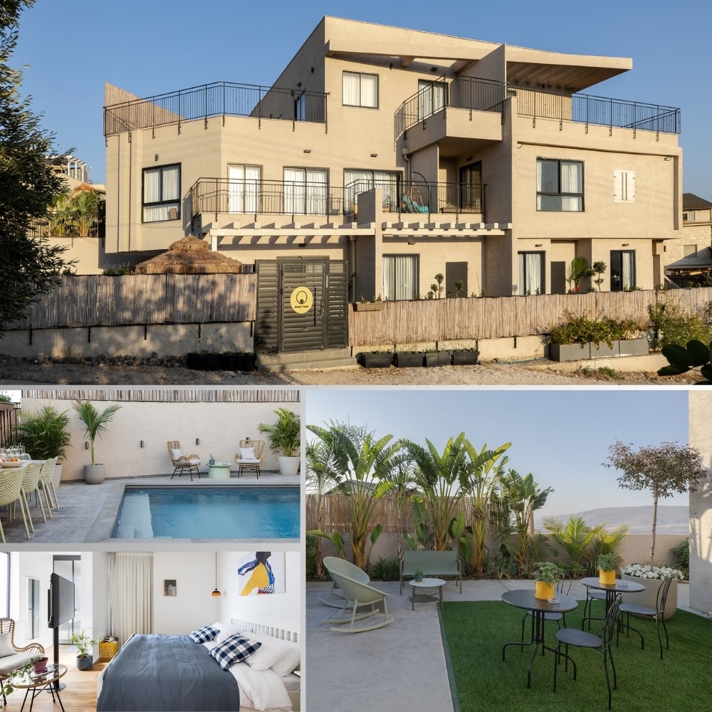 Villa Circle – A Luxury Villa in Nof Kinneret, Upper Galilee 8 beautifully designed bedrooms, a private heated and covered pool with an electric roof and a child-safety cover, a large spa Jacuzzi, wet and dry sauna, and a spacious yard with a barbecue area, pool table, ping-pong, foosball, and a trampoline. Perfect for couples, families, and groups of up to 10 guests – the ideal combination of luxury, privacy, and a breathtaking Galilee view.