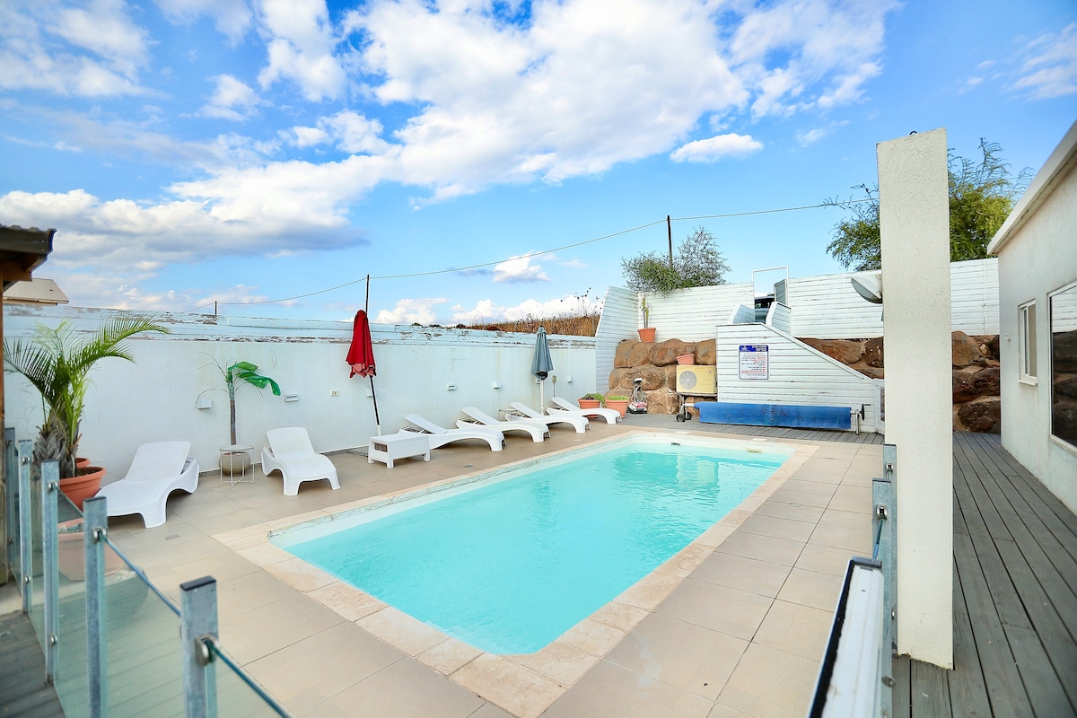 HEATED AND COVERED POOL DURING WINTER. Beautiful, comfortable 5-room villa with a large garden and private pool. Pergola, garden furniture, barbecue area, Billiards, ping pong, foosball, trampoline, and swing. Located in Yavneel, 10 minutes from Tiberias, in a peaceful and pleasant setting, it offers a relaxing stay for the whole family. No music during Shabbat and Yom Tov. No Messibot. Very attractive weekly rates.