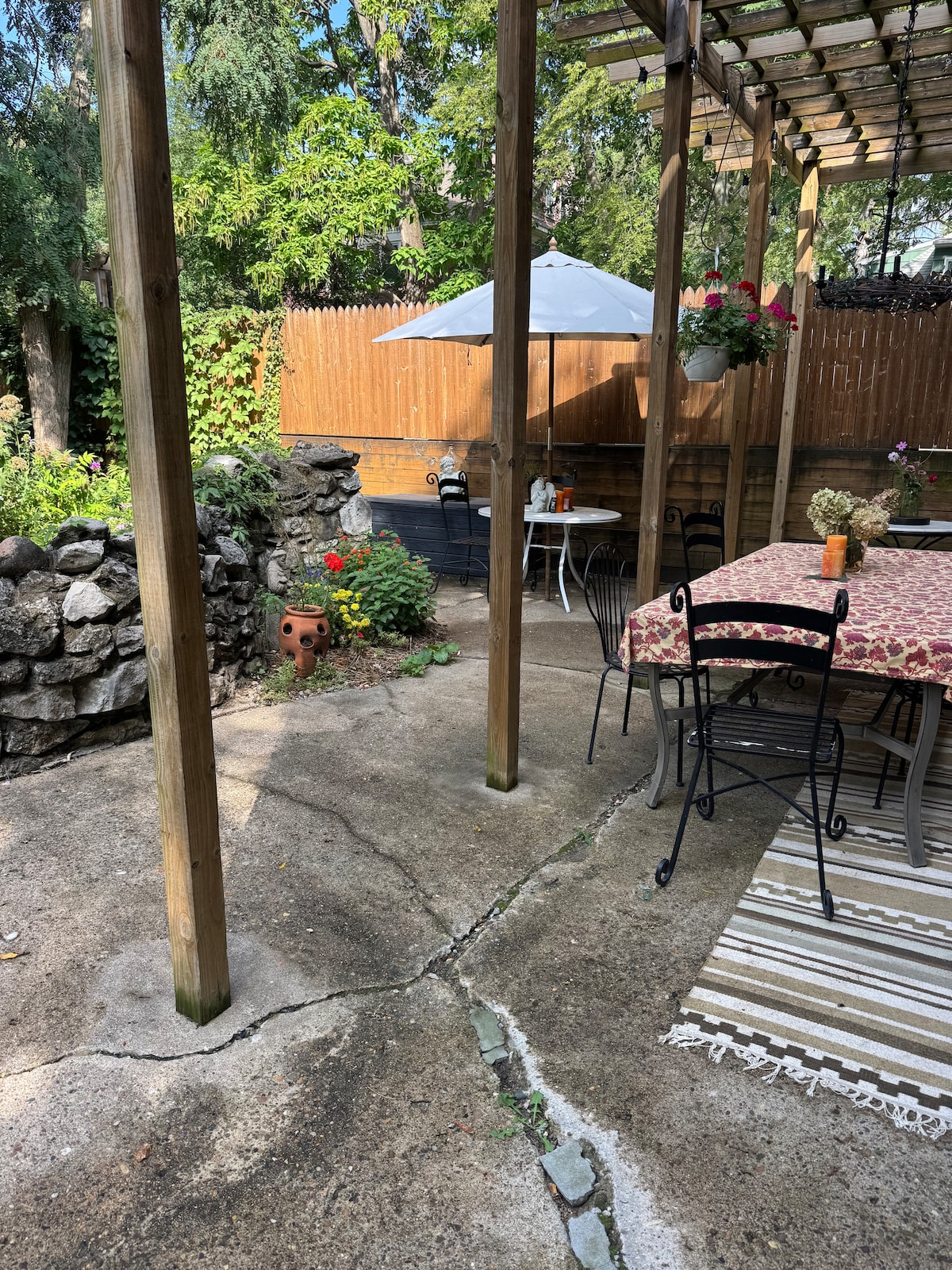We've created a beautiful garden level apartment, so you feel at home, away from home. Clean, bright, & airy, w/ natural light in every room, a spacious bath, equipped kitchen, comfortable/adaptable living space. With north & east lawn(s), outdoor seating areas, patio w/ bbq, & picnic table. Enjoy woodland views, birds, wildlife, spring gardens, your own wooded getaway just off campus. Easy access to UIowa Campus, downtown IC, and Coralville Private parking, & 2 private entrances