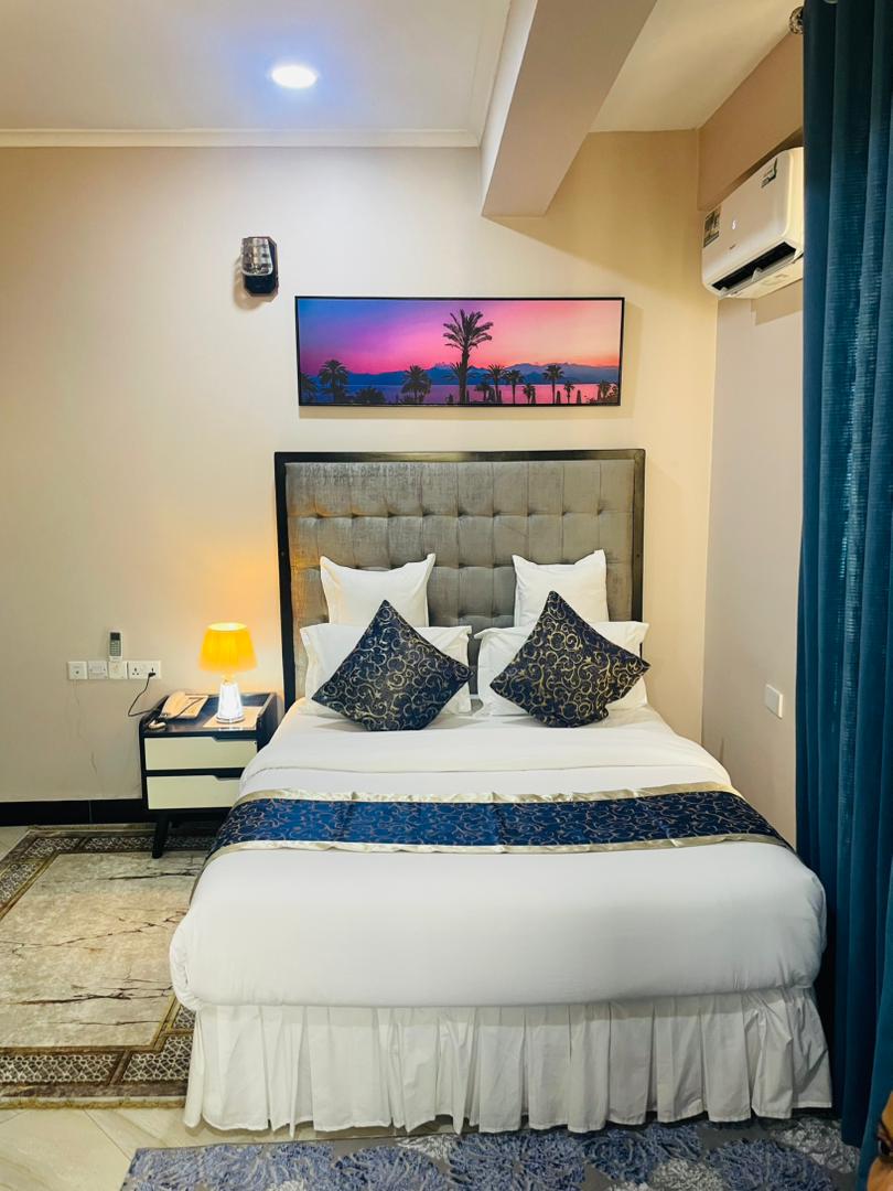 Our elegantly designed rooms are neat, spacious, and of superior quality, offering exceptional value for money. Enhance your stay at our sophisticated rooftop lounge, where a mesmerizing 360° view of Dar es Salaam provides the perfect backdrop for relaxation. Indoors, indulge in our stylish lounges and private restaurant, which serve an enticing mix of international flavors and authentic African/Tanzanian cuisine.