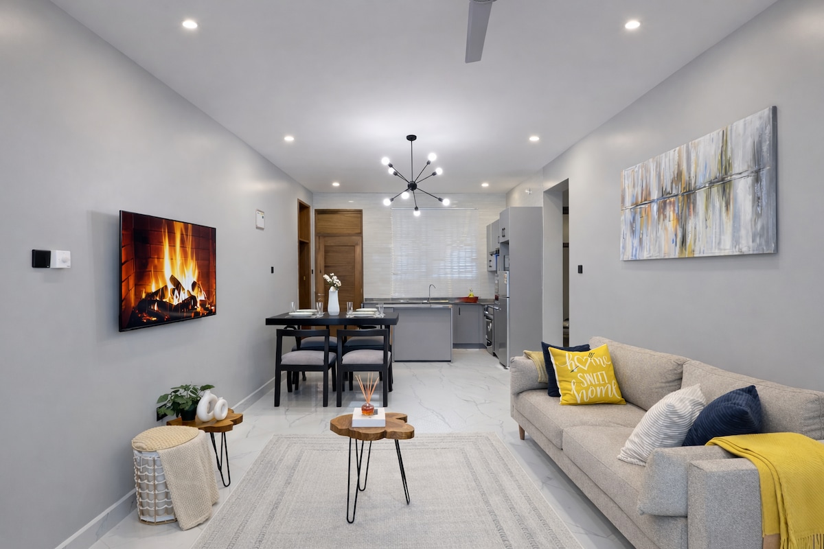 Enjoy a stylish experience at this centrally-located place with modern 1bed apartment in Masaki and stunning sea views. Sip a drink by the pool, train at our gym, your kids get to use the play area, secure access, parking & 24/7 security. Located on Haile Selassie Rd (2nd floor, no sea view) Just 18km from JNIA Airport, 10km to SGR station, 15km to Magufuli Bus Stand & 9km to Zanzibar Ferry Perfect for families or business travelers seeking comfort & convenience in Dar es Salaam.