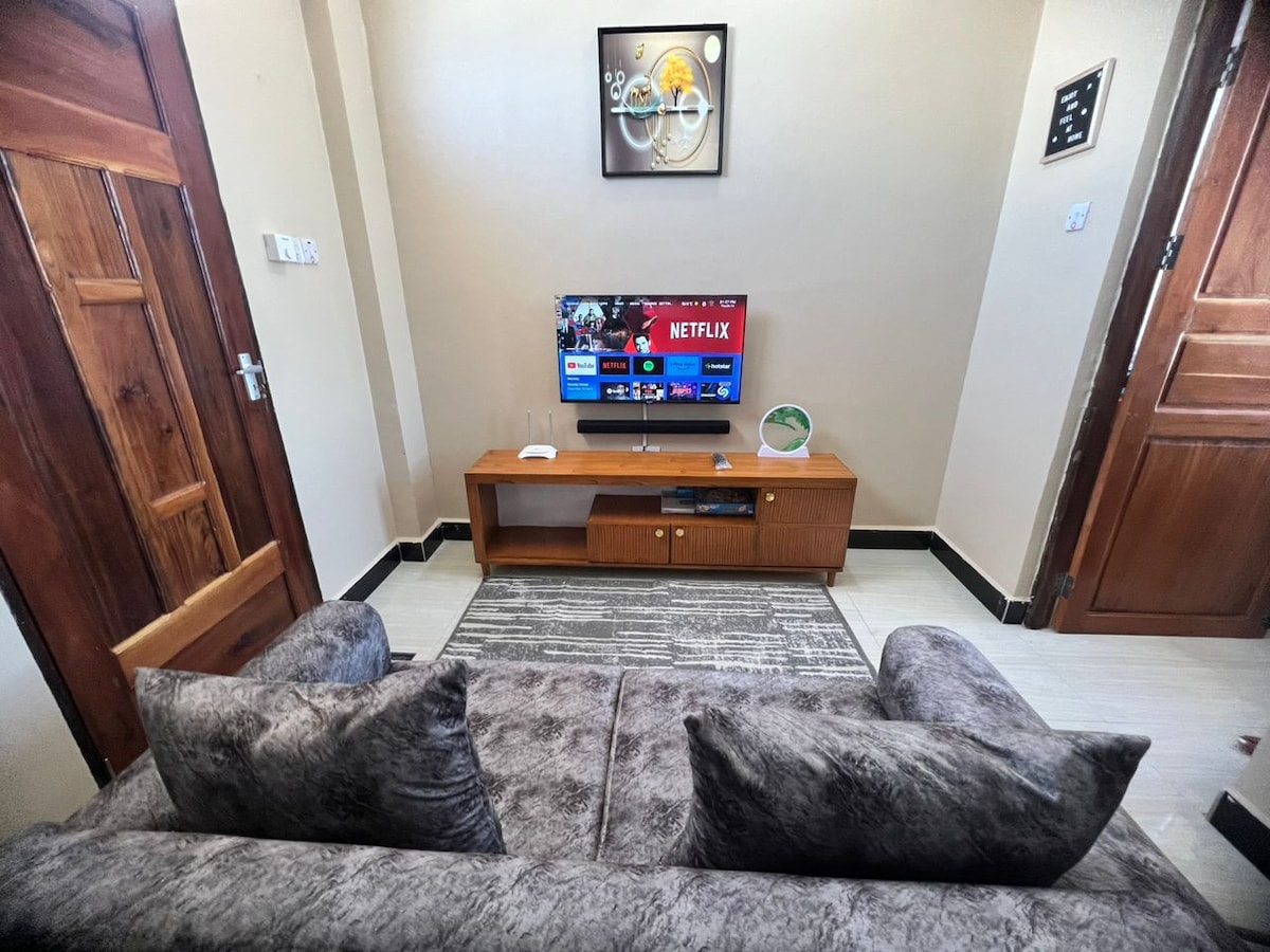 Escape to The Greenhouse, where warmth and elegance meet. Our retreat is designed with super comfy beds, soft ambient lighting, and modern decor that soothes and welcomes. Features: - Enjoy shows and movies on a 75” TV with free Netflix, Amazon Prime, and YouTube. - Stay connected with fast-speed Wi-Fi and an excellent sound system. - Explore easily with the city center, Zanzibar Ferry, and vibrant nightlife just moments away. Our mission: To ensure your stay is nothing short of exceptional