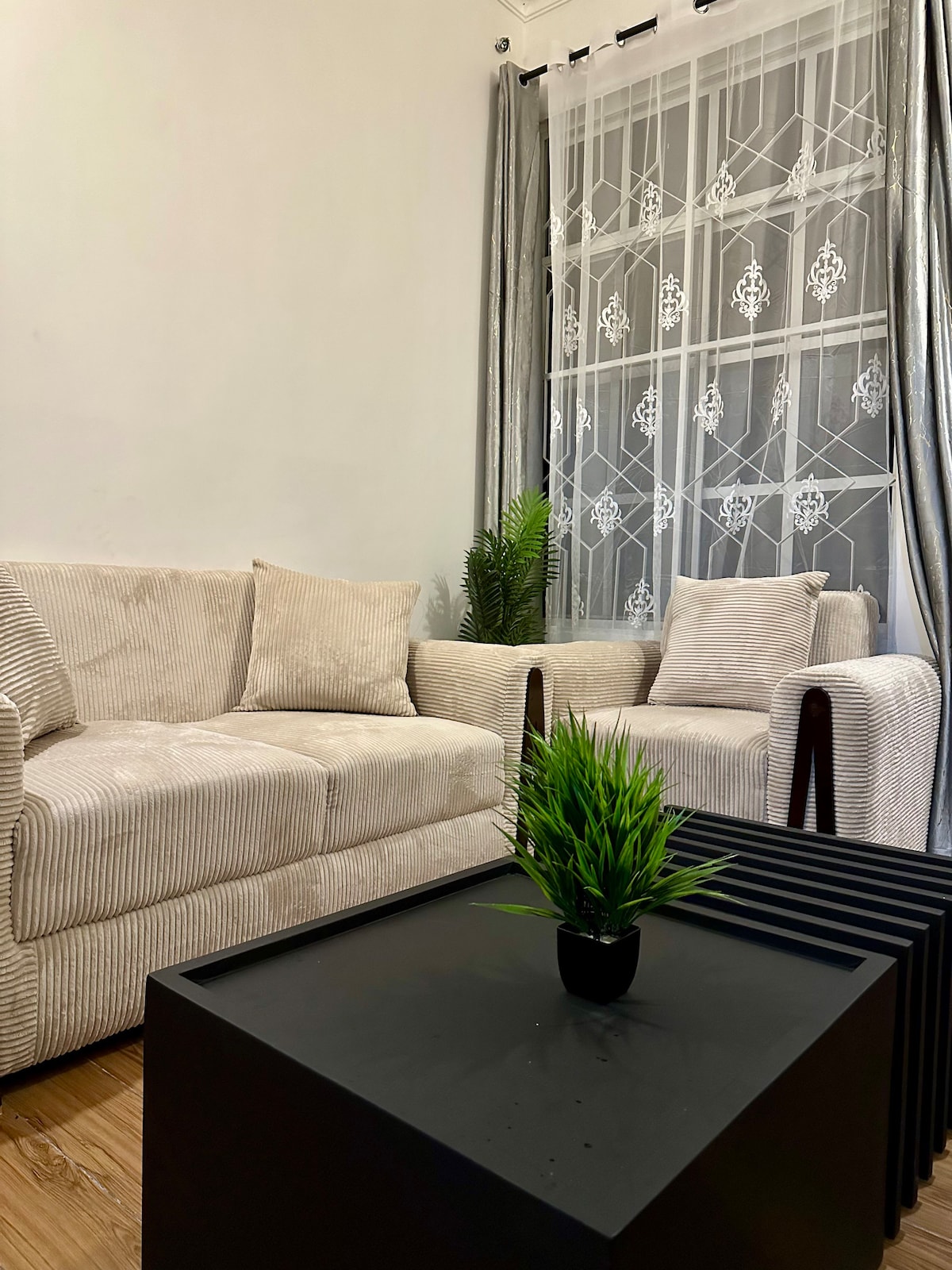 Welcome to one bedroom apartment with big space for your comfort,relaxation suitable for couples gatesway,working staff,travellers,diplomats,students,expatriates A full equiped kitchen,a living room,a modern bathroom,cozy beddings,coffee station,laundry area, The view of the garden with an outdoor sitting area makes the home more alive Its located in the prime area where you will have access to restaurants,coffee shops,nightlife,beachresorts,