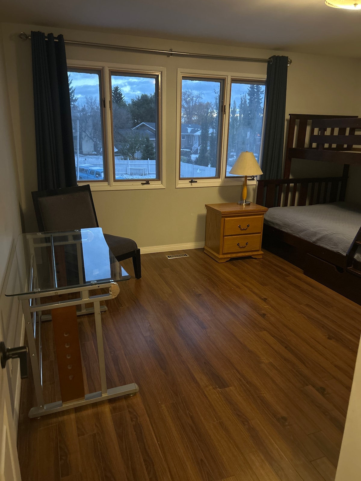 This is a two-bedroom suite on the main floor with a furnished kitchen, living room, and bathroom that you can use exclusively. It is located on the peaceful east part of the town. It is close to the town center and Alberta Prairie Railway/Polar express. This is a 2-unit house with a basement suite with a separate entrance occupied by a long-term renter. Entrance to the basement is for emergency exit only or when laundry access needed. This house is built in 1965, floor may squeak.