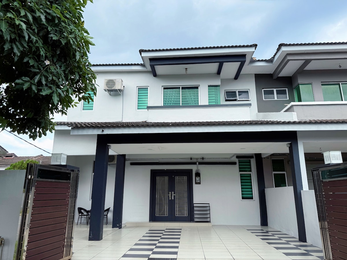 Renovated 1-storey house with FREE wi-Fi! Your whole family (max 12) rest comfortably in 4 fully air-conditioned queen size Japanese Tatami bedrooms with 3 full bathrooms. A U-shaped bar table open kitchen (air conditioned) with fridge, induction cooker and kettle for your light meal and family casual cook during holiday. The house has enough power outlets (USB charging) Remote auto gate access for 2 cars parking porch. Car wash is welcomed. Filtered water system available.