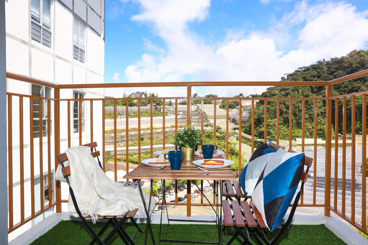 Facing greenery at highest floor in Brinchang town, Emeralds Avenue. 4 queens + 2 single beds for 10 pax & 3 baths. 3 car park near lift. Senior friendly. Fully fitted kitchen with Coway water purifier. Behind Centrum Mall. walking distance to more than 100 eateries, Burger King, KFC, Billion supermarket, wet& Cactus Valley. Free Unify & Netflix. 55” smart TV. We provide mahjong & carrom tables For 20 pax you can book connecting unit. EA922-Link https://www.airbnb.com/h/josplaceemera ma