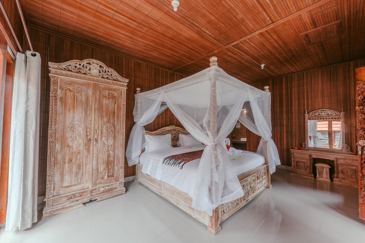 This wooden guesthouse is nestled atop a mountain in the area just north of Munkduk, Bali. It’s a great escape from the bustling city and crazy traffic that is found in southern Bali. Garden Terrace has a beautiful surrounding garden area, but it is close to a small road, so there is occasional sounds of vehicles that pass by throughout the day. At night it is much more peaceful There is an espresso machine in the room for guest. I sell coffee products that come from north Bali