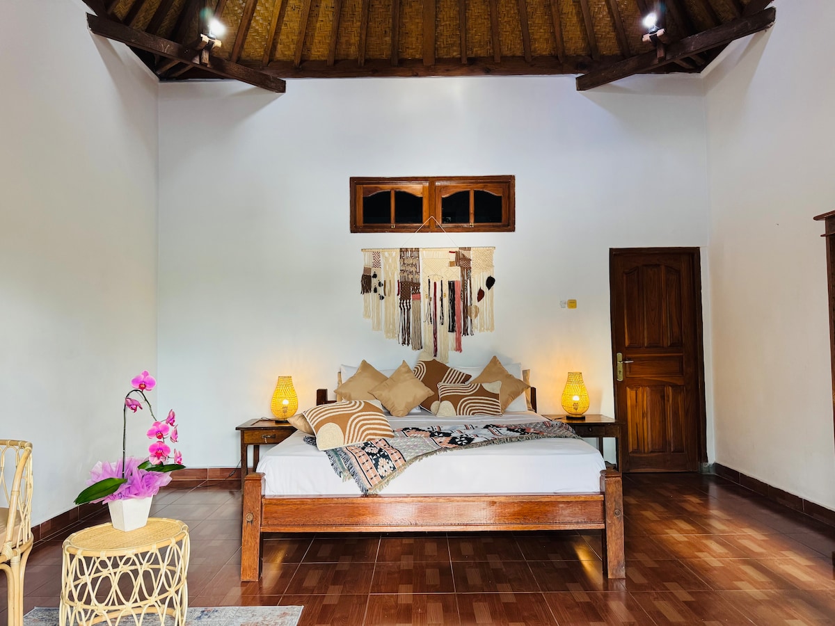 We’re offering a special limited-time rate while we enhance the Bamboo Dome for added privacy and comfort. Normally open-air, the Dome has been adjusted with closed curtains during a nearby resort project and will soon be fully enclosed. Guests can still enjoy this unique bamboo space in comfort — with our restaurant and pool open as usual, and the same warm Ubud hospitality.