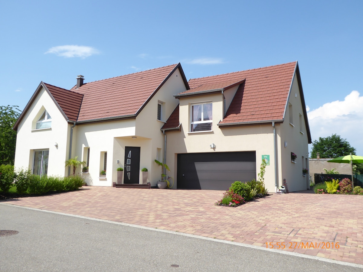Small quiet house located in the center of Alsace. Close to the Château du Haut Koenisgbourg, the Eagle Volerie and the Monkey Mountain. 30km from the Europapark amusement park in Germany, 25km from Obernai, 45km from Strasbourg by car (accessible by train in 25 minutes with 1 service every hour), 25km from Colmar and the wine route is 3 km away . Sélestat train station is 2.5 km away.