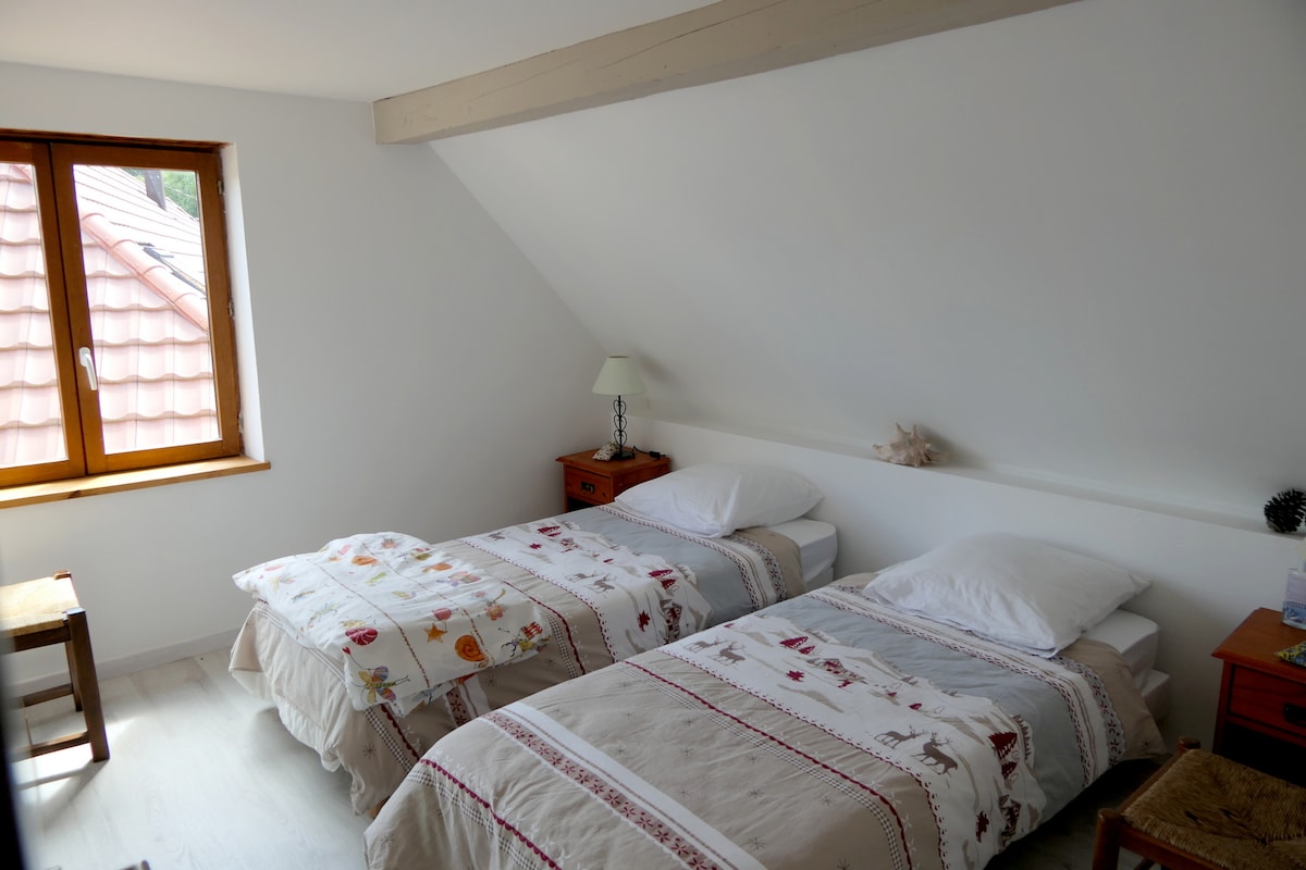 Bienvenue au Gîte des Épicurieux 4* sur la route des vins d'Alsace! Nous vous accueillons dans une charmante maison individuelle située à côté de la notre. Récemment rénovée, vous y trouverez tout l'équipement et le confort nécessaire pour une escapade en amoureux ou des vacances en famille. Elle peut accueillir 2 à 4 personnes grâce au canapé convertible du salon et nous proposons une méridienne pour un enfant à l'étage dans la chambre principale.