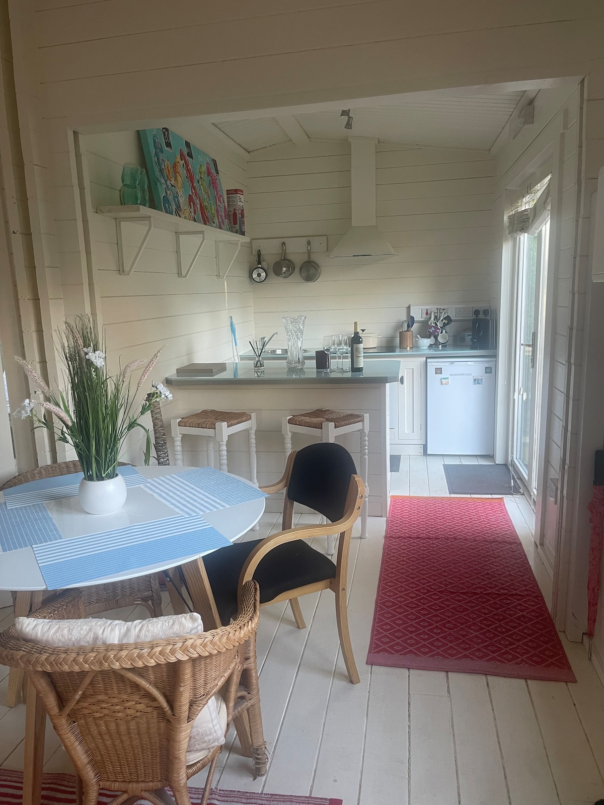 Shabby chic barn is beautifully furnished in an eclectic style, and fully equipped for your stay with us. There is a wrap around sheltered decking area to have morning coffee or evening drinks along with a private entrance and parking. It is a home from home, cosy and welcoming. We provide a welcome package of breakfast items such as a selection of cereals, yogurt, jams, home baked scones, teas and coffee, instant and cafetière.