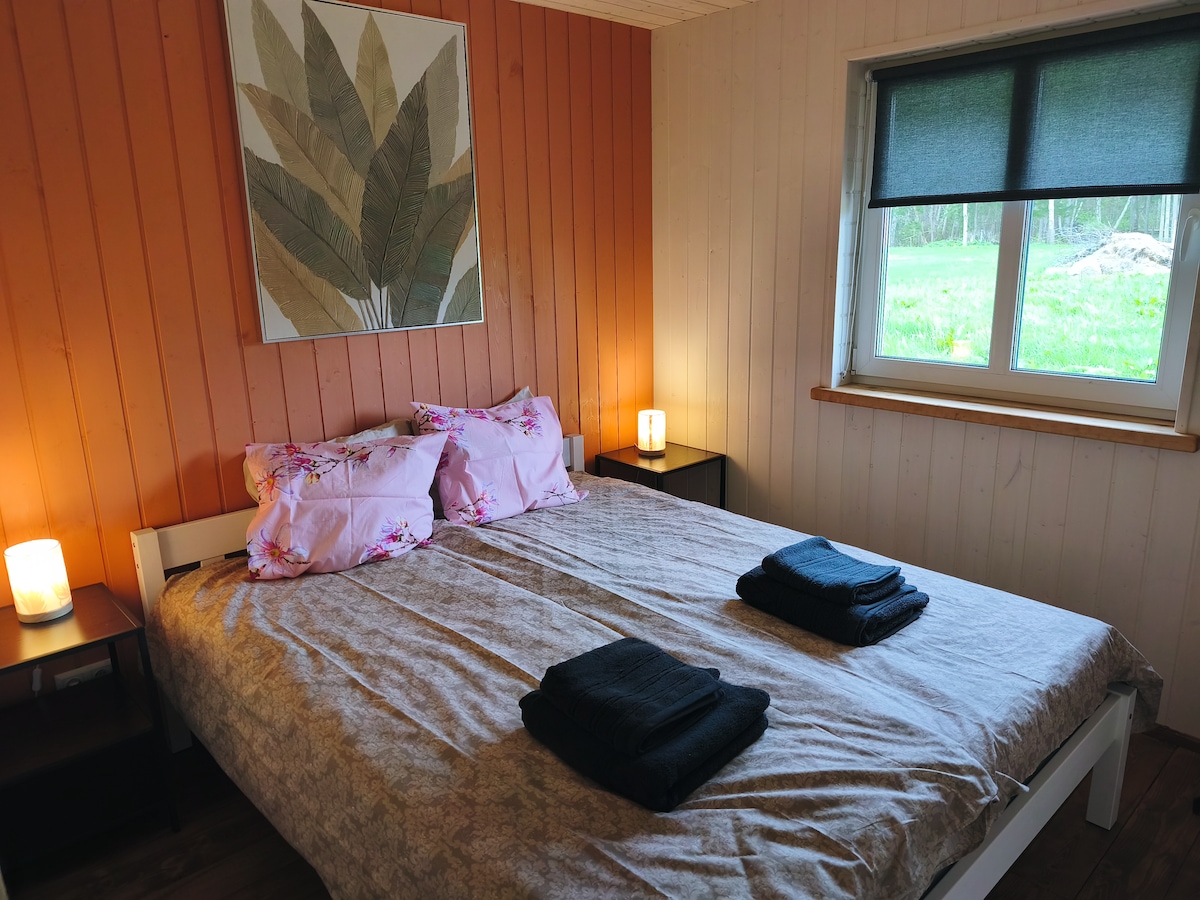 Detached foresthouse in the peace of the woods.You can enjoy nature and relax.The yard contains the foresthouse ,our house, sauna, outdoorkitchen and a shed for the animals.The sea is nearby, you can walk through the forest to the beach within 20min. If you travel by bus it is an option that we pick you up in Kuressaare (20,-)or Kihelkonna(7,-).