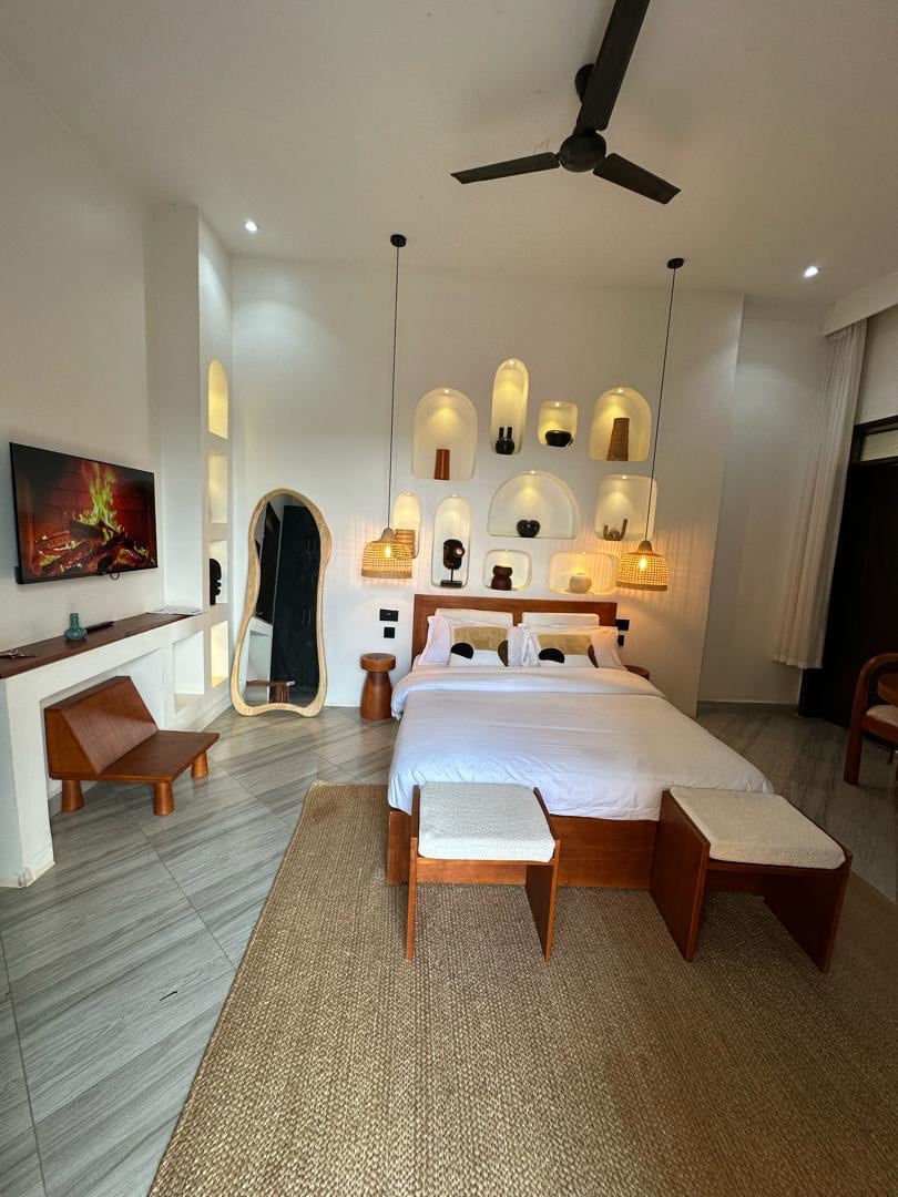 Residence 42 offers 5-star hotel-grade living in a spacious 4-bedroom home, ideal for families, groups, relocations, and business travellers. Set within a secure gated community with gardens and quiet streets, it provides international-standard comfort and privacy, while remaining close to the vibrance of city life. Enjoy European appliances, internet access, reliable 100% solar-supported power, stylish interiors, and generous space to live and work.
