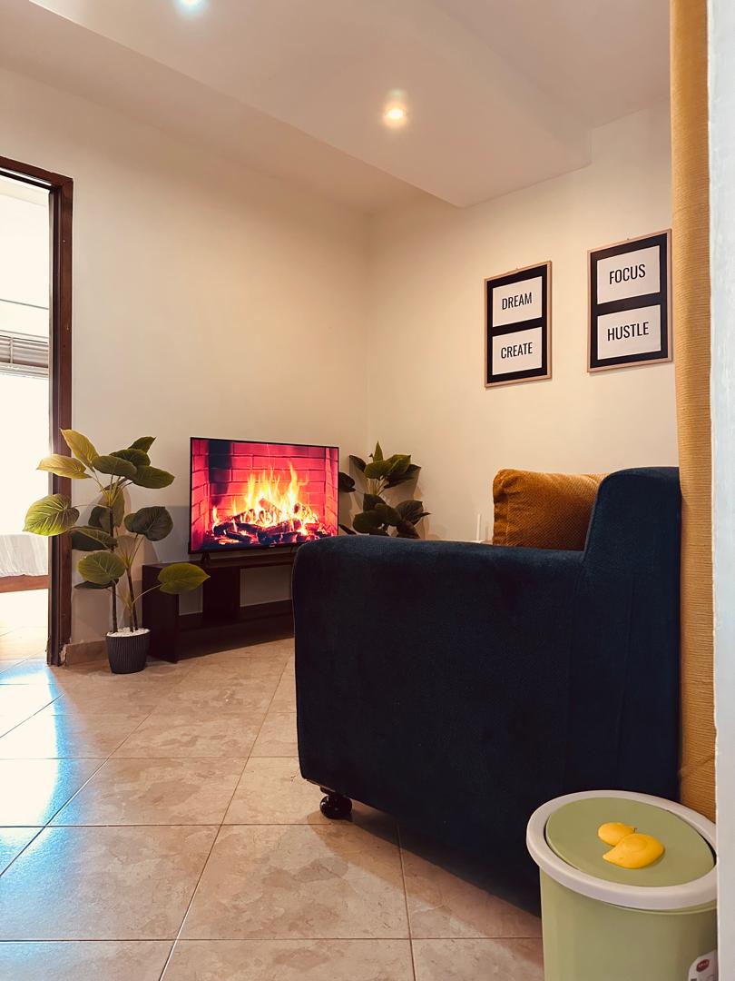 This Aesthetic One Bedroom Apartment is located in Naalya Estate near Quality Supermarket. It's a few minutes drive to the northern bypass connection leading you to the Airport via Express Highway and close to Acacia Mall, nice restaurants and bars nearby. There are also a number of alternative routes to the city center. The amenities are; - All kitchen appliances eg. Rice cooker, Coffee machine, Blender - Fast Speed WI-FI - 55inch Samsung smart tv - Samsung sound bar - Washing Machine