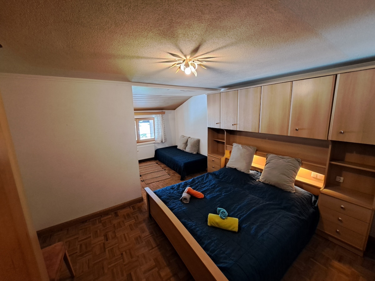 Situated on the outskirts of a Tyrolian mountain village this place offers you a wonderful-broad view. The apartment, lovingly combining tradition and modernity will let you calm down and recharge your batteries instantly. A closeby cable car enables you to all kinds of mountain sports in summer and winter. Yet- even those, who just "stay and relax" will feel at home. WIFI, TV, BT-boxes, parking space are available free of charge; for the Sauna we take a small feey. Kitchen is well equipped .