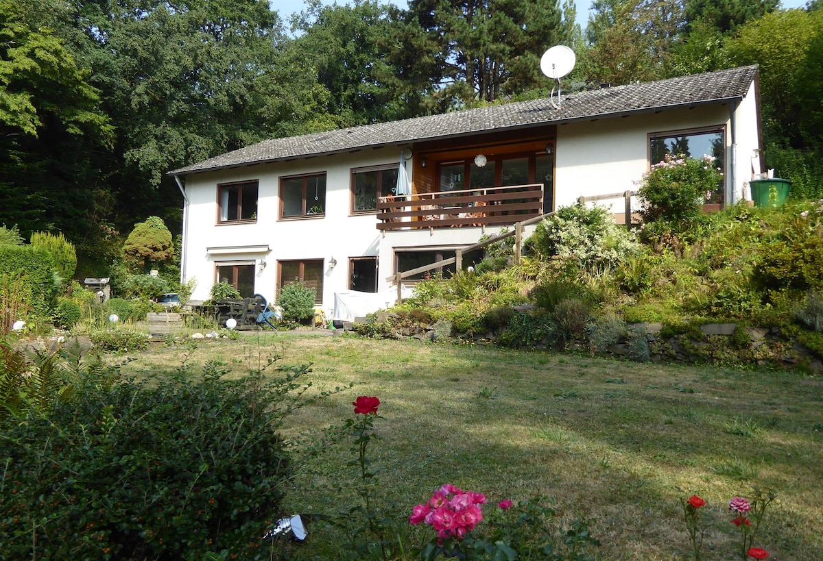 Freistehendes Landhaus in Wiesen und Wäldern in absoluter Alleinlage. Wander/Radwege starten direkt am Haus. Es gibt einen tollen überdachten Grill mit Kamin. Der wunderschöne Garten kann vielfältig genutzt werden. Eine Tischtennisplatte, ein Kicker und eine Dartscheibe sind in der Doppelgarage und bieten bei jedem Wetter Spaß. Der schöne antike Landhausstil lädt sofort zur Entspannung ein. Die Küche ist bestens ausgestattet. Außerhalb der Ferien können wir den Check-In/Out oft verlängern.