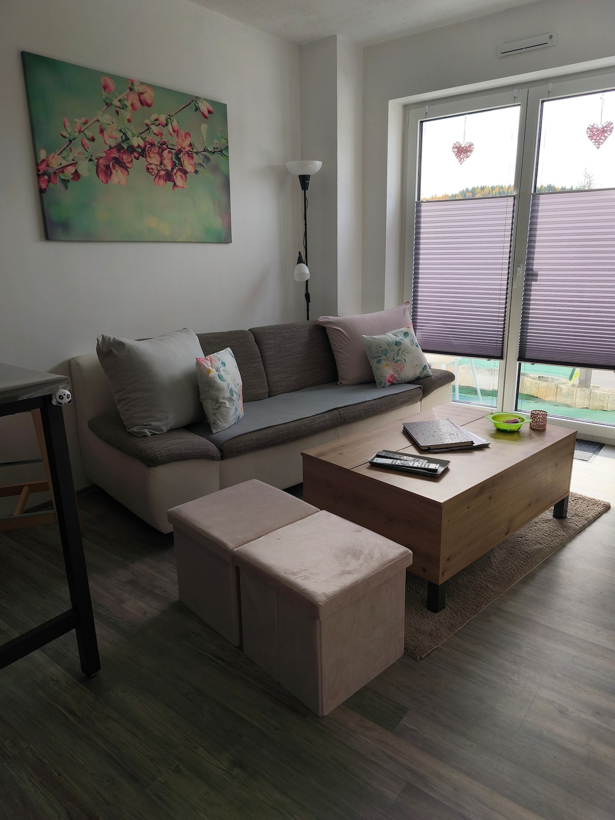 Wir vermieten diese schöne Einliegerwohnung (ca. 60 m2) mit separatem Eingang und direkten Zugang zur Natur im Sauerland. Die Wohnung hat ein Schlafzimmer mit Doppelbett für 2 Personen und ein weiteres Zimmer mit Schlafcouch für 2 Personen . Optional ist es möglich die hochwertige Schlafcouch im Wohnzimmer für 2 weitere Gäste zu nutzen. Die Schlafcouch verfügt über eine integrierte Matratze für Dauerschläfer. Sie profitieren von kostenfreiem WLAN und Privatparkplatz an der Unterkunft.