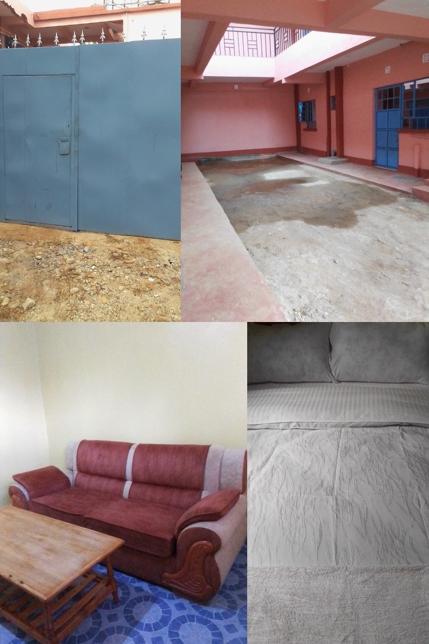 WRECH is a budget accommodation in the heart of Sagana town. It is NOT a 3 BEDROOM but has; - 3 Separate Rooms & Comfortable beds. - WiFi for PAY as you use - A kitchenette with a table top cooker, microwave, water kettle & utensils. - 1 Bathroom with hot shower & Toilet outside the rooms. - Street car parking We take one booking per night, you shall not be sharing the space with other guests during your stay. We provide linen, towels and a staff to check you in check-in.